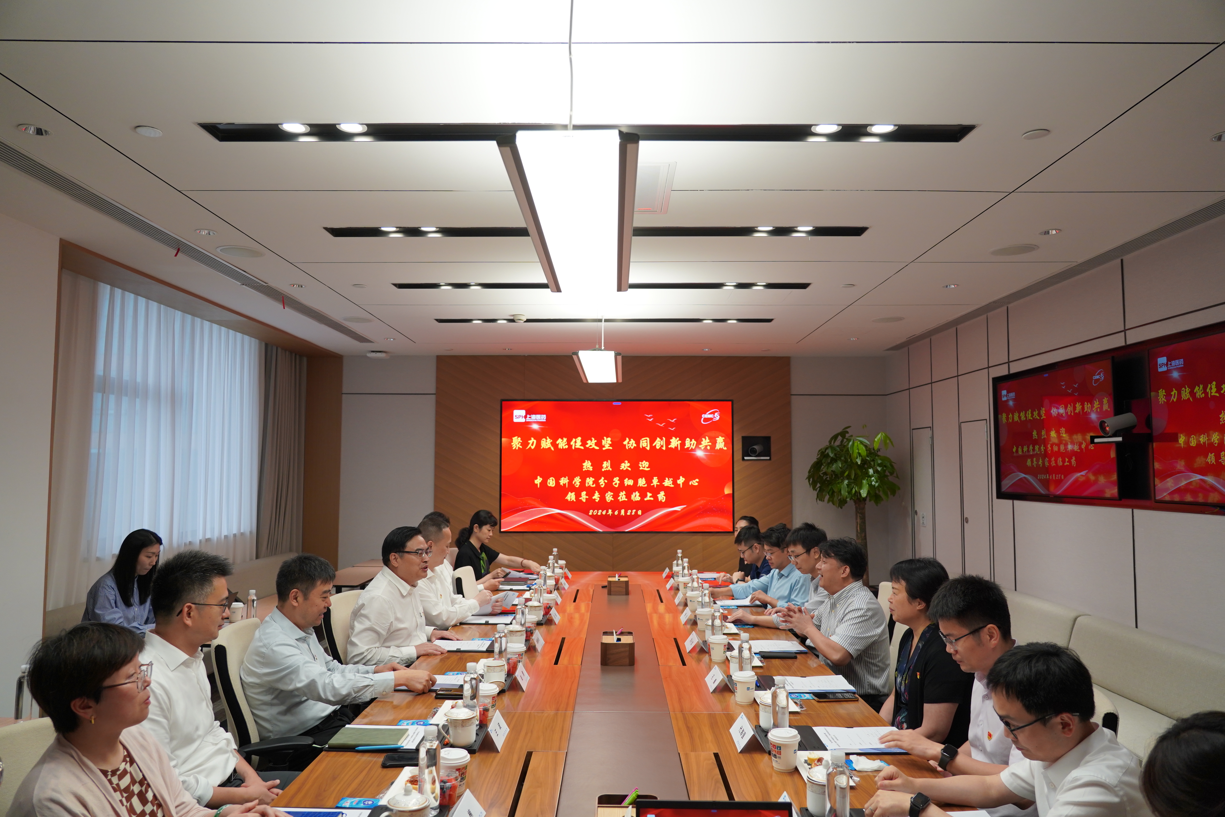 為慶祝中國(guó)共產(chǎn)黨成立103周年,6月28日下午,分子細(xì)胞卓越中心與上海醫(yī)藥集團(tuán)開(kāi)展“聚力賦能促攻堅(jiān) 協(xié)同創(chuàng)新助共贏”黨建共建活動(dòng),上海醫(yī)藥集團(tuán)黨委書記、董事長(zhǎng)楊秋華,黨委副書記、執(zhí)行董事、總裁沈波,黨委副書記、副總裁趙勇;分子細(xì)胞卓越中心主任、黨委負(fù)責(zé)人劉小龍,黨委副書記、紀(jì)委書記孔巍,科研骨干代表,以及雙方相關(guān)管理部門負(fù)責(zé)人等參加會(huì)議。