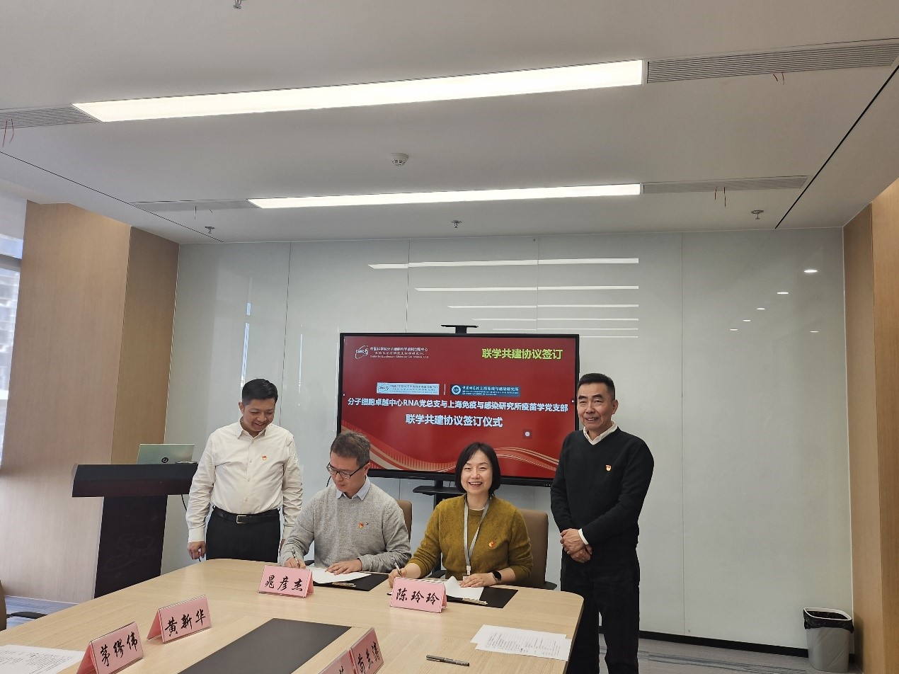 雙方在共同參觀了分子細胞科學卓越創(chuàng)新中心閔行基地實驗室、公共技術平臺后開展深入座談交流。座談會上,雙方代表分別介紹了本單位科研工作進展和未來發(fā)展計劃,并圍繞“如何加強雙方在疫苗學領域的科研合作與攻關”展開了熱烈討論。參會人員積極發(fā)言,從各自的研究領域出發(fā),探討了合作潛力、可能的研究方向以及未來發(fā)展方向等。在雙方黨員代表的共同見證下,陳玲玲、晁彥杰共同簽署了結對共建協議,開啟攜手并進新篇章。