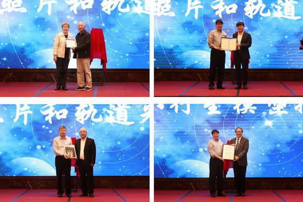 何梁何利基金(香港)北京代表處首席代表助理蒙建東和吳雪峰、趙海斌分別向王應(yīng)睞先生次子王家楠和分子細(xì)胞科學(xué)卓越創(chuàng)新中心主任劉小龍、黨委書記倪福弟頒贈國際命名公報、命名證書、星照片和軌道光盤。段瑞春向劉小龍頒贈“王應(yīng)睞星”證書銅匾。