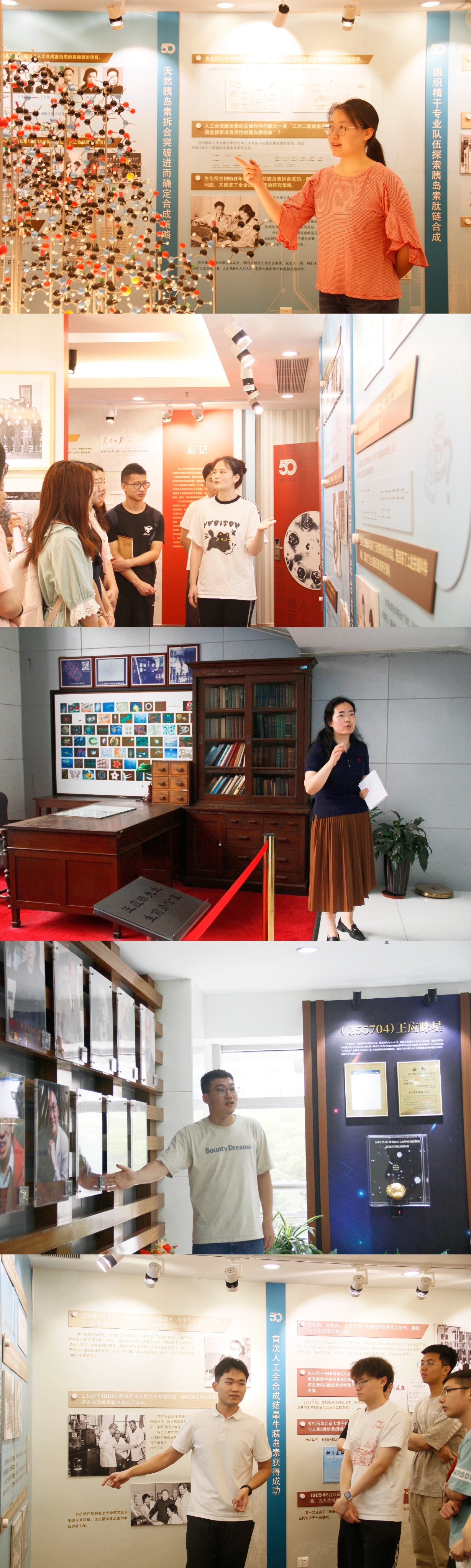 “院士墻”、“王應睞星”、“人工合成牛胰島素展廳”講解