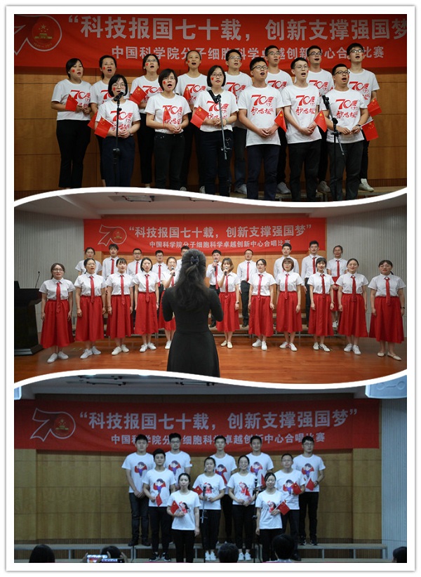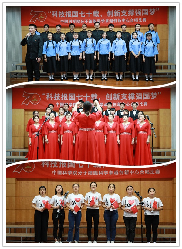 此次合唱比賽得到了中心師生員工的積極響應。半個多月來,大家紛紛利用業(yè)余時間進行排練,從選曲編排到道具制作都凝結了集體智慧的結晶,比賽還發(fā)掘了一批“深藏不露”的文藝人才,他們脫下實驗服拿起麥克風依然極具戰(zhàn)斗力。作為卓越中心慶祝中華人民共和國成立70周年、中國科學院成立70周年系列活動之一,科研人員用歌聲向祖國宣誓,將繼續(xù)堅守“傳承胰島素精神,探索生命奧秘,不斷提高人民健康水平”的初心,勇?lián)皠?chuàng)新科技,滿足國家人口健康領域戰(zhàn)略部署和重大需求,建設國際一流分子細胞科學創(chuàng)新中心”的使命,為建設世界科技強國和實現(xiàn)中華民族偉大復興的中國夢作出新的更大貢獻。