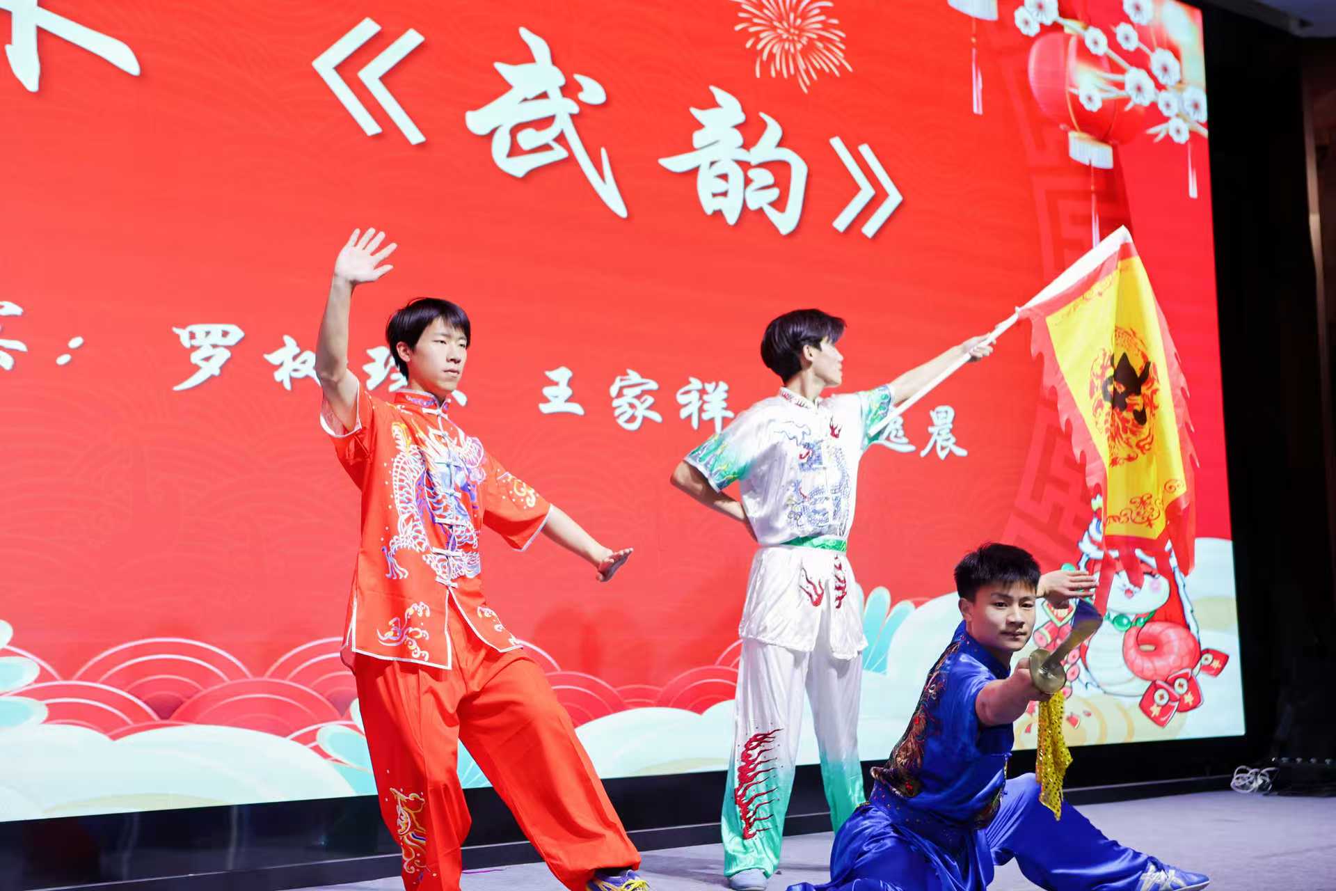 “傳承與創(chuàng)新” 篇章中,武術(shù)表演《武韻》剛健有力,表演者們動(dòng)作行云流水,將中華武術(shù)的精氣神展現(xiàn)得淋漓盡致,傳遞著堅(jiān)韌不拔的傳承精神。朗誦《祖國(guó)的春天》深情激昂,訴說(shuō)著新時(shí)代的花朵們對(duì)祖國(guó)的熱愛(ài)與對(duì)未來(lái)的憧憬。新 PI 代表帶來(lái)的歌曲《新 PI 陣線聯(lián)盟》充滿活力,趣味不斷,表演結(jié)束后,他們依次介紹自己,用各具特色的家鄉(xiāng)話為同學(xué)們送上新年祝福,鄉(xiāng)音傳遞著濃濃的關(guān)愛(ài)與期許,彰顯著科研新生力量的朝氣與擔(dān)當(dāng)。