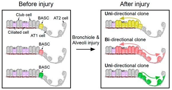 周斌研究組揭示肺臟支氣管肺泡干細(xì)胞(BASC)具有雙向分化潛能