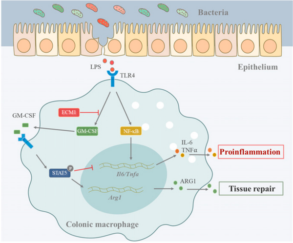 ECM1對腸道巨噬細胞調(diào)控模式圖