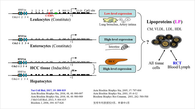 實(shí)驗(yàn)室一直從事生化、分子生物學(xué)等方面工作,研究方向先為基因的表達(dá)功能、后聚焦于固醇代謝平衡?生理病理調(diào)控?靶標(biāo)系統(tǒng)創(chuàng)建,主要圍繞膽固醇代謝關(guān)鍵酶表達(dá)功能和固醇轉(zhuǎn)運(yùn)調(diào)控,長(zhǎng)期與美國(guó)Dartmouth醫(yī)學(xué)院TY Chang教授合作,著重研究細(xì)胞膽固醇代謝平衡關(guān)鍵酶--?;o酶A:膽固醇?;D(zhuǎn)移酶(ACAT)的表達(dá)功能,探索ACAT的基因結(jié)構(gòu)、轉(zhuǎn)錄剪接、翻譯修飾、表達(dá)調(diào)控、功能模式及其與膽固醇代謝平衡的生理功能、病理變化等關(guān)系,包括與細(xì)胞質(zhì)膜游離膽固醇的動(dòng)態(tài)平衡、細(xì)胞膽固醇及其代謝物固醇的載運(yùn)特異脂蛋白分泌外排和轉(zhuǎn)運(yùn)調(diào)控、動(dòng)脈粥樣硬化(AS)病(如冠心病、中風(fēng))、神經(jīng)退行性疾病(如老年癡呆癥,AD)、癌癥(如肝癌,HCC)等關(guān)系,深入ACAT靶標(biāo)系統(tǒng)創(chuàng)建及新藥研發(fā)等,取得了系統(tǒng)性前沿原創(chuàng)成果。