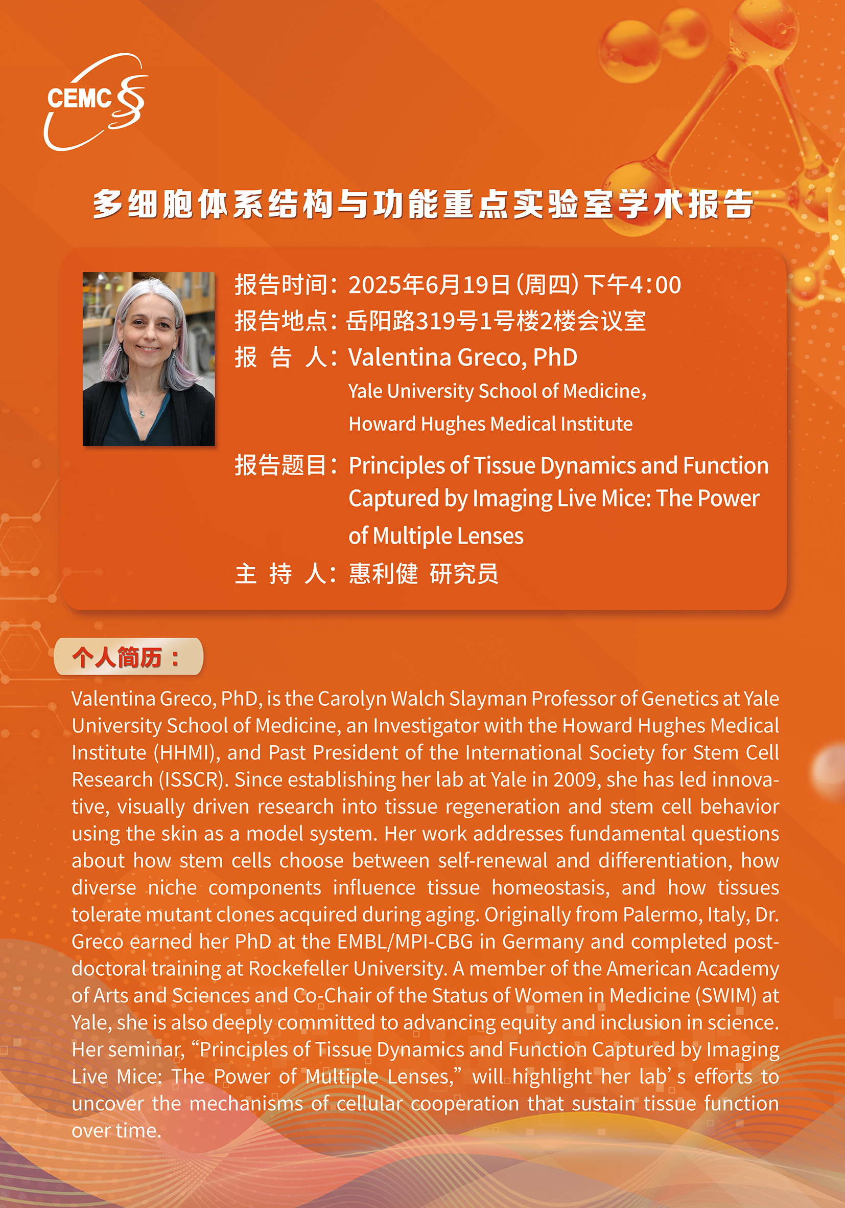 Prof.?Valentina Greco,?Yale University:?Principles of?Tissue Dynamics and Function?Captured by lmaging Live Mice: The Power?of Multiple Lenses