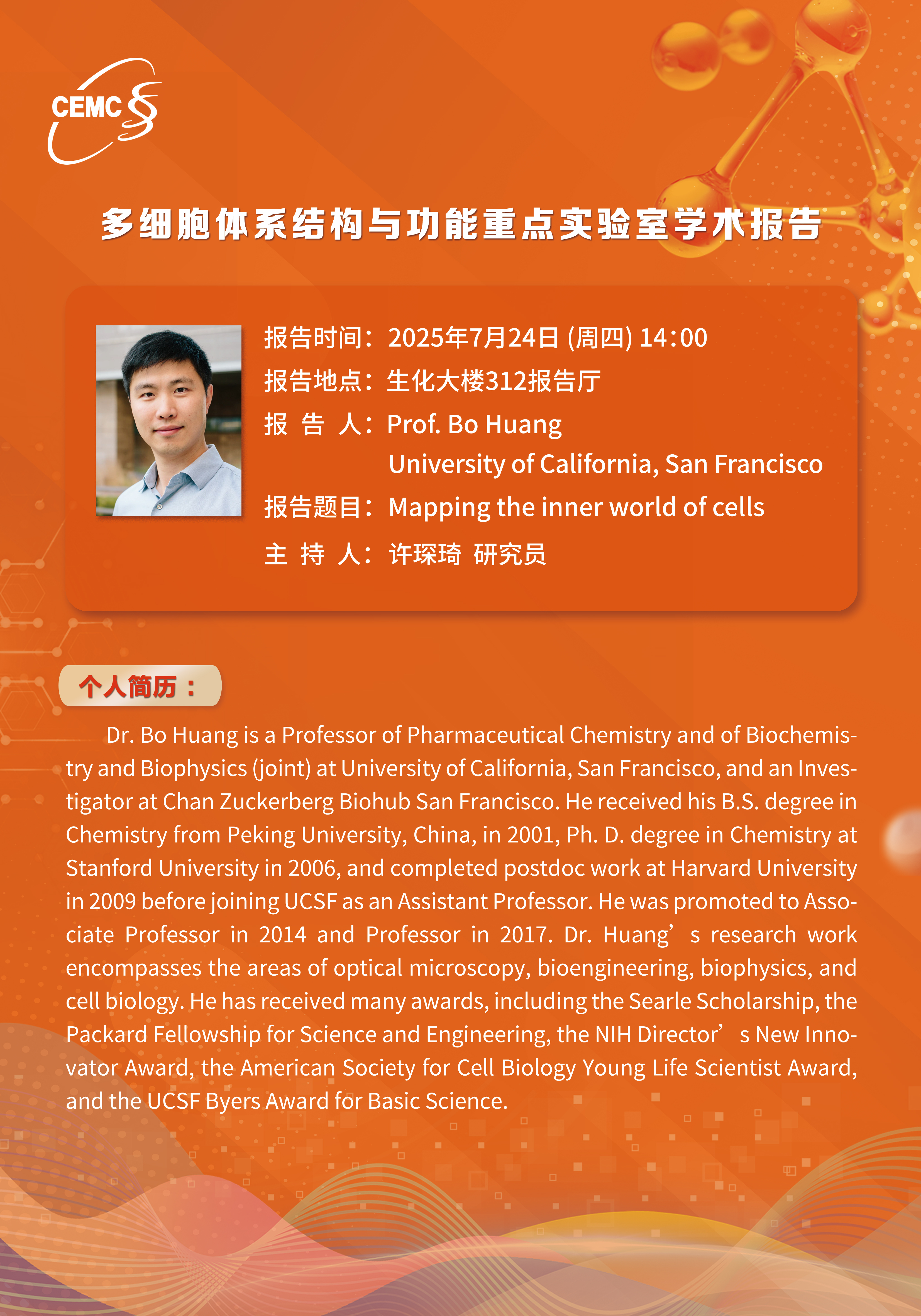 Prof. Bo Huang, University of California, San Francisco: Mapping the inner world of cells
