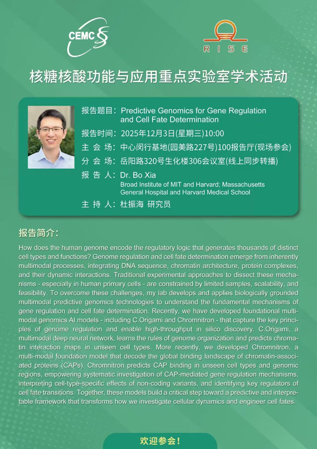 Prof.?Bo?Xia,?Broad?Intitute?of?MIT?and?Harvard:?Predictive Genomics for Gene Regulation?and Cell Fate Determination
