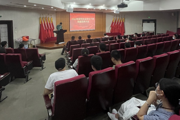 選舉會(huì)議在慷慨激昂的國歌聲中拉開序幕。2021屆研究生會(huì)主席魏同坤代表主席團(tuán)作研究生會(huì)過去一年工作的總結(jié)報(bào)告。隨后,全體代表審議并通過了研究生會(huì)學(xué)生干部換屆選舉辦法和候選人名單。九位候選人依次進(jìn)行競聘報(bào)告。經(jīng)現(xiàn)場(chǎng)投票,監(jiān)票人、計(jì)票人進(jìn)行公開唱票、計(jì)票,劉子群等八名同學(xué)當(dāng)選2022年研究生會(huì)學(xué)生干部。
