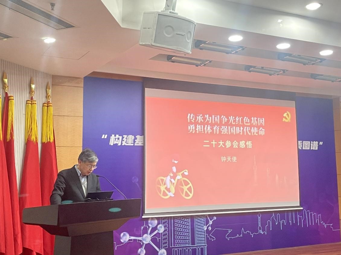 鐘天使作題為《傳承為國爭光紅色基因,勇?lián)w育強國時代使命》的報告,以體育人的獨特視角,解讀黨的二十大報告關于“加快建設體育強國”的部署和要求。她講述了自己的成長經(jīng)歷和奮斗歷程,分享了遇到傷病,甚至想放棄的時候,是怎么堅持下來的。報告充分體現(xiàn)了祖國強大對體育競技帶來了強勁動力與堅強保障,特別是科技創(chuàng)新助力奧運奪牌,新科技可以讓競賽團隊制訂更科學、更有效的訓練、傷病治療與康復計劃,支撐奧運奪冠;同時也彰顯了中華體育精神助力民族文化傳播,鐘天使和她的伙伴們一起進校園、進社區(qū)、進樓宇,弘揚奧林匹克精神和中華體育精神,以體育的力量給大家?guī)砀喾e極向上的精神力量,傳播“為國爭光、無私奉獻、科學求實、遵紀守法、團結協(xié)作、頑強拼搏”的中華體育精神。