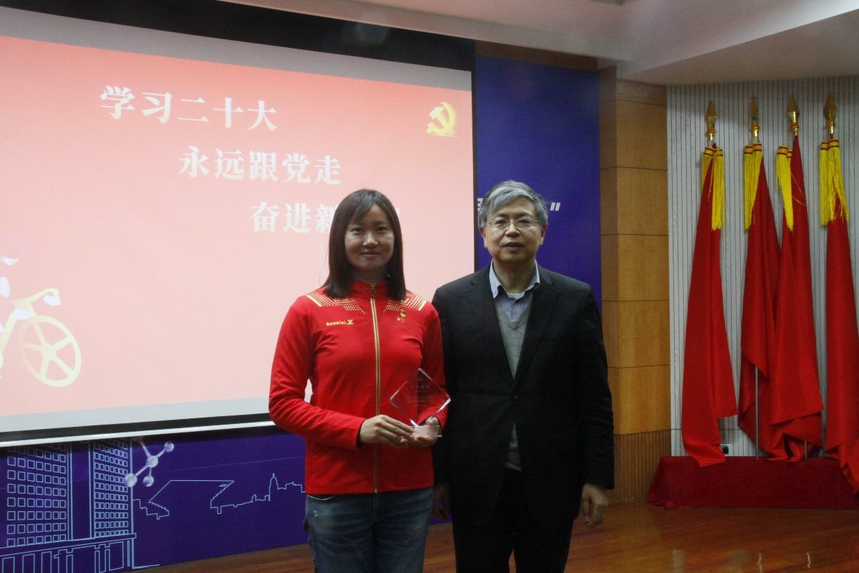 與天使姐姐的對話,讓我感悟頗深。從里約奧運會打破世界紀錄,獲得場地自行車女子團體競速金牌,創(chuàng)造歷史;到東京奧運會再創(chuàng)奇跡,延續(xù)輝煌。聽天使回憶訓練日程和備戰(zhàn)比賽的艱辛,我真切地看到了堅持不懈、拼搏奮斗、散發(fā)著閃耀光芒的天使。在天使的眼中,這一次次成功的背后不僅有自己刻苦訓練的汗水,更與教練的指導、隊友的陪伴支持以及團隊的后勤保障密不可分,正所謂勝利的榮譽離不開集體。在交談中,天使數(shù)次提到作為一名共產(chǎn)黨員,她深感自豪,同時也深知自身的使命與擔當,不僅為國家榮譽而戰(zhàn),更要將中華文化傳播至五湖四海,展現(xiàn)大國風采!我們要向天使學習,作為“國家隊”,心系“國家事”,肩扛“國家責”,秉承“潛心科研、精益求精、直面挫折”的胰島素精神,擔當起科技人的使命,為實現(xiàn)科技強國夢貢獻青春力量!
