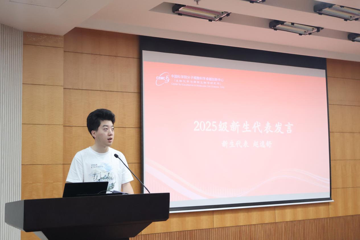 本科畢業(yè)于武漢大學(xué)的趙逸舒同學(xué)作為2025級(jí)新生發(fā)言。他分享了自己已在中心的實(shí)習(xí)經(jīng)歷,坦言最初的激動(dòng)之情已逐漸褪去,更深刻感受到身上肩負(fù)的科研責(zé)任,希望自己能不愧于“中國(guó)科學(xué)院學(xué)子”的稱號(hào),認(rèn)識(shí)到研究生階段應(yīng)聚焦國(guó)家與人民需求,以 “獻(xiàn)身、求實(shí)、團(tuán)結(jié)、奮進(jìn)” 所訓(xùn)為指引,踐行科研報(bào)國(guó)的使命。