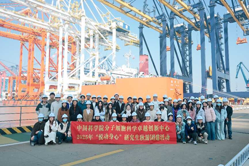 秋光正好,惠風(fēng)和暢。為深化研究生思政教育,豐富課余文化生活,促進身心全面發(fā)展,11月23日,分子細胞卓越中心組織近60名研究生赴振華重工及長興島郊野公園,開展2025年“悅動身心”秋游團建活動。同學(xué)們暫別繁忙的實驗室與數(shù)據(jù)臺,在“工業(yè)硬核”與“田園治愈”的沉浸式體驗中感悟家國擔(dān)當(dāng)、汲取奮進力量,完成了一場思想與身心共成長的實踐之旅。