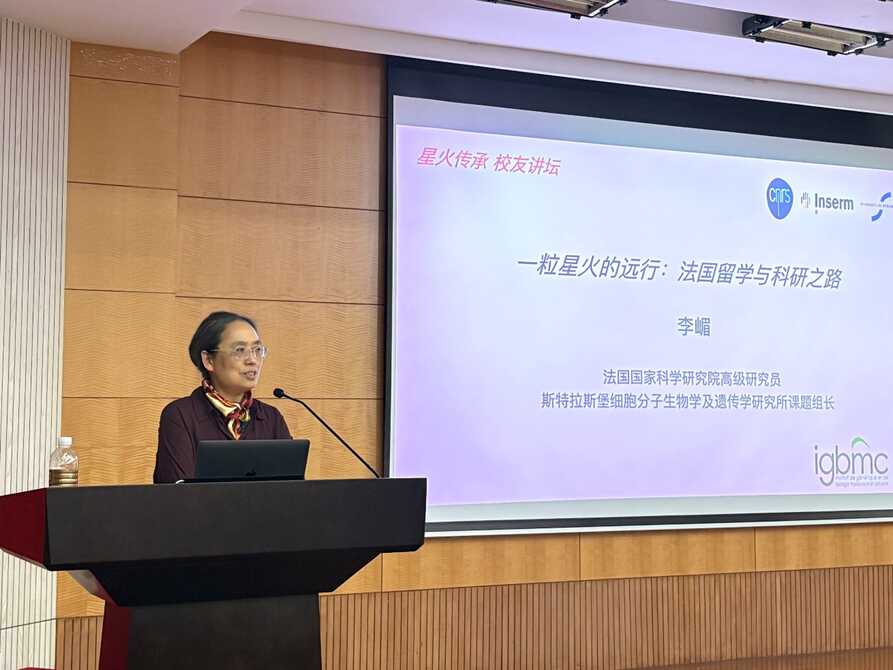 為深化在學(xué)研究生與杰出校友的交流聯(lián)動,助力學(xué)生學(xué)術(shù)成長與職業(yè)發(fā)展,12月23日下午,分子細(xì)胞卓越中心第二期“星火傳承·校友講壇”順利舉辦。本次活動特邀1993級校友、法國國家科學(xué)研究院、斯特拉斯堡細(xì)胞分子生物學(xué)及遺傳學(xué)研究所課題組長李嵋研究員蒞臨分享,中心百余名師生到場參與,講壇由研究生會主席張宇航主持。