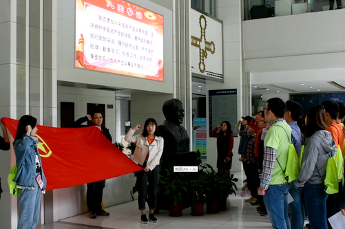 上午9點(diǎn)半,隊(duì)員們匯聚在王應(yīng)睞先生銅像前,面向團(tuán)旗,在領(lǐng)誓人的帶領(lǐng)下重溫入團(tuán)誓詞。隨后,參賽隊(duì)員們進(jìn)行了簡(jiǎn)短的熱身活動(dòng)后就迅速?zèng)_向各個(gè)任務(wù)點(diǎn)。