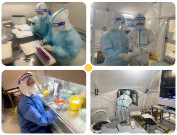 中心黨委在抗“疫”一線成立了臨時黨支部、團(tuán)支部,隊員們組織多次臨時支部會議,分析遇到的問題,總結(jié)工作經(jīng)驗。每天的工作餐、交接班輪轉(zhuǎn)和來回酒店的時間都是隊員們的交流時段,沒時間交流他們就用小紙條留言。第一批的隊員也自覺承擔(dān)起“傳幫帶”的任務(wù),向第二批前來支援的隊員傳授經(jīng)驗。大家一起匯聚力量,凝練智慧,大大提升了工作效率,高質(zhì)量地完成了檢測任務(wù)。