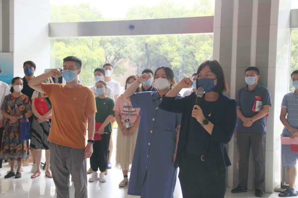 展廳開幕儀式后,在所新黨員在市第十二次黨代會(huì)代表陳玲玲研究員的帶領(lǐng)下,面向黨旗莊嚴(yán)宣誓,作出莊嚴(yán)的承諾。