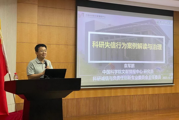 為進(jìn)一步加強(qiáng)科研誠信與學(xué)風(fēng)建設(shè),增強(qiáng)科研誠信和學(xué)術(shù)道德意識,營造良好科研氛圍,6月30日下午,分子細(xì)胞科學(xué)卓越創(chuàng)新中心邀請中科院文獻(xiàn)情報(bào)中心袁軍鵬研究員作《科研失信行為案例解讀與治理》專題報(bào)告,中心領(lǐng)導(dǎo)、全體PI、技術(shù)平臺及期刊編輯部負(fù)責(zé)人、管理部門負(fù)責(zé)人、高年級研究生代表參加了會(huì)議。會(huì)議由黨委副書記、紀(jì)委書記孔巍主持。