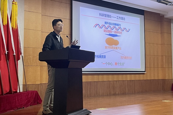 科研管理處胡光晶介紹了部門工作理念、工作內(nèi)容以及研究生科研倫理審查、科研論文審核備案的相關(guān)要求。