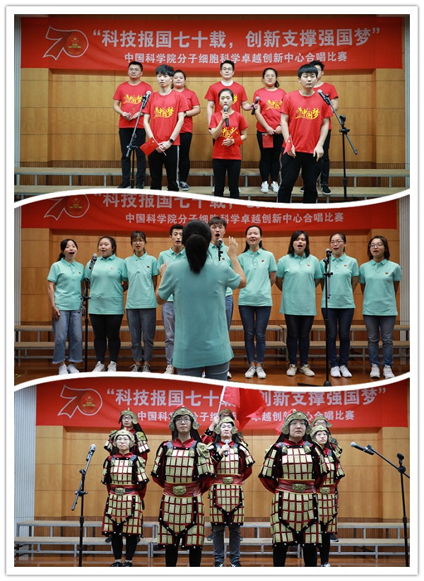 此次合唱比賽得到了中心師生員工的積極響應。半個多月來,大家紛紛利用業(yè)余時間進行排練,從選曲編排到道具制作都凝結了集體智慧的結晶,比賽還發(fā)掘了一批“深藏不露”的文藝人才,他們脫下實驗服拿起麥克風依然極具戰(zhàn)斗力。作為卓越中心慶祝中華人民共和國成立70周年、中國科學院成立70周年系列活動之一,科研人員用歌聲向祖國宣誓,將繼續(xù)堅守“傳承胰島素精神,探索生命奧秘,不斷提高人民健康水平”的初心,勇?lián)皠?chuàng)新科技,滿足國家人口健康領域戰(zhàn)略部署和重大需求,建設國際一流分子細胞科學創(chuàng)新中心”的使命,為建設世界科技強國和實現(xiàn)中華民族偉大復興的中國夢作出新的更大貢獻。