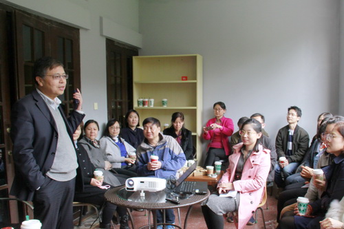 所黨委書記倪福弟為分享會熱情開場,希望行政人員借此空間不斷增進了解,促進管理部門人文建設,并將此“共享空間”作為落實基層黨建、文化建設、職工之家的載體平臺??蒲刑幒饩Ш腿私烫幩谓鸱家黄鸱窒砹私衲?月初參加中科院上海分院系統(tǒng)中青年骨干培訓班赴兵團開展黨性教育實踐活動的心得體會,以“崢嶸歲月”“人間正道”“重任在肩”三個篇章為主線,講述了新疆的過去、現(xiàn)在和未來。他們圍繞新疆的歷史和獨特地理位置,新疆建設兵團的“前世今生”,通過一個個感人至深的小故事,如“一雙眼睛”“沙海老兵”“馬背上的醫(yī)生”等再現(xiàn)了兵團人“熱愛祖國、無私奉獻、艱苦創(chuàng)業(yè)、開拓進取”的紅色精神?!爸厝卧诩纭逼聞t介紹了黨中央推進新疆社會穩(wěn)定和長治久安的總目標、目前新疆面臨的困難和中央實施的一系列舉措,解釋了“訪惠聚”“認親戚”“兩面人”等專有名詞,讓與會人員深刻感受到安邊固疆工作的不易。