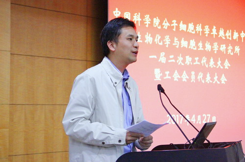 黨委書記王學才代表研究所黨政領導班子講話。他感謝一年來全體師生員工為研究所改革創(chuàng)新發(fā)展做出的貢獻。他說,研究所職工代表大會是職工行使民主權利,反映職工意愿與訴求,為研究所發(fā)展建言獻策的重要平臺,也是對研究所的工作給予監(jiān)督,促進研究所民主決策與民主管理的有效途徑。他強調,研究所在“十三五”期間要充分發(fā)揮工會與職代會的作用,緊密團結全所師生員工發(fā)揚“獻身、求實、團結、奮進”的研究所精神,集全所之力踐行中科院“率先行動”計劃,推動分子細胞卓越創(chuàng)新中心、蛋白質上海設施和蘇州研究院建設,將研究所建設成為國際一流研究機構,在新的歷史時期再創(chuàng)新的輝煌。