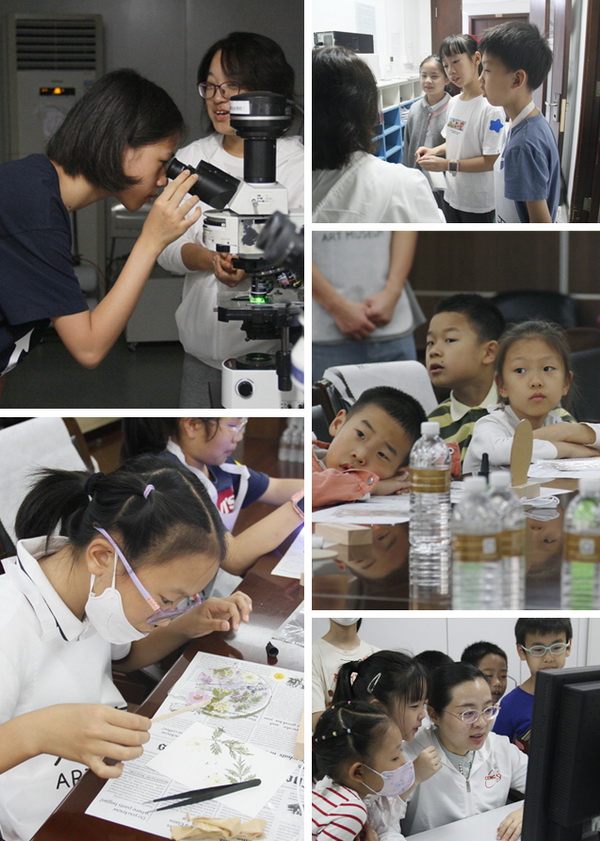 初窺微觀“宇宙”的大門,每一個小朋友都興致勃勃。不論是熒光顯微鏡下的五彩繽紛,還是電鏡中的黑白世界,生活中隨處可見的樹葉、花朵、昆蟲翅膀、甚至是剪下來的一縷頭發(fā)絲,都在它們的鏡頭中變得“神秘莫測”起來。小朋友們好奇地打量著這些看似平平無奇的科學儀器,驚嘆它們的小身體中蘊藏著大能量,每一個人都彷佛進入了科學萬花筒,用“微”鏡頭的另一只“眼”領略生命科學的瑰麗美景。