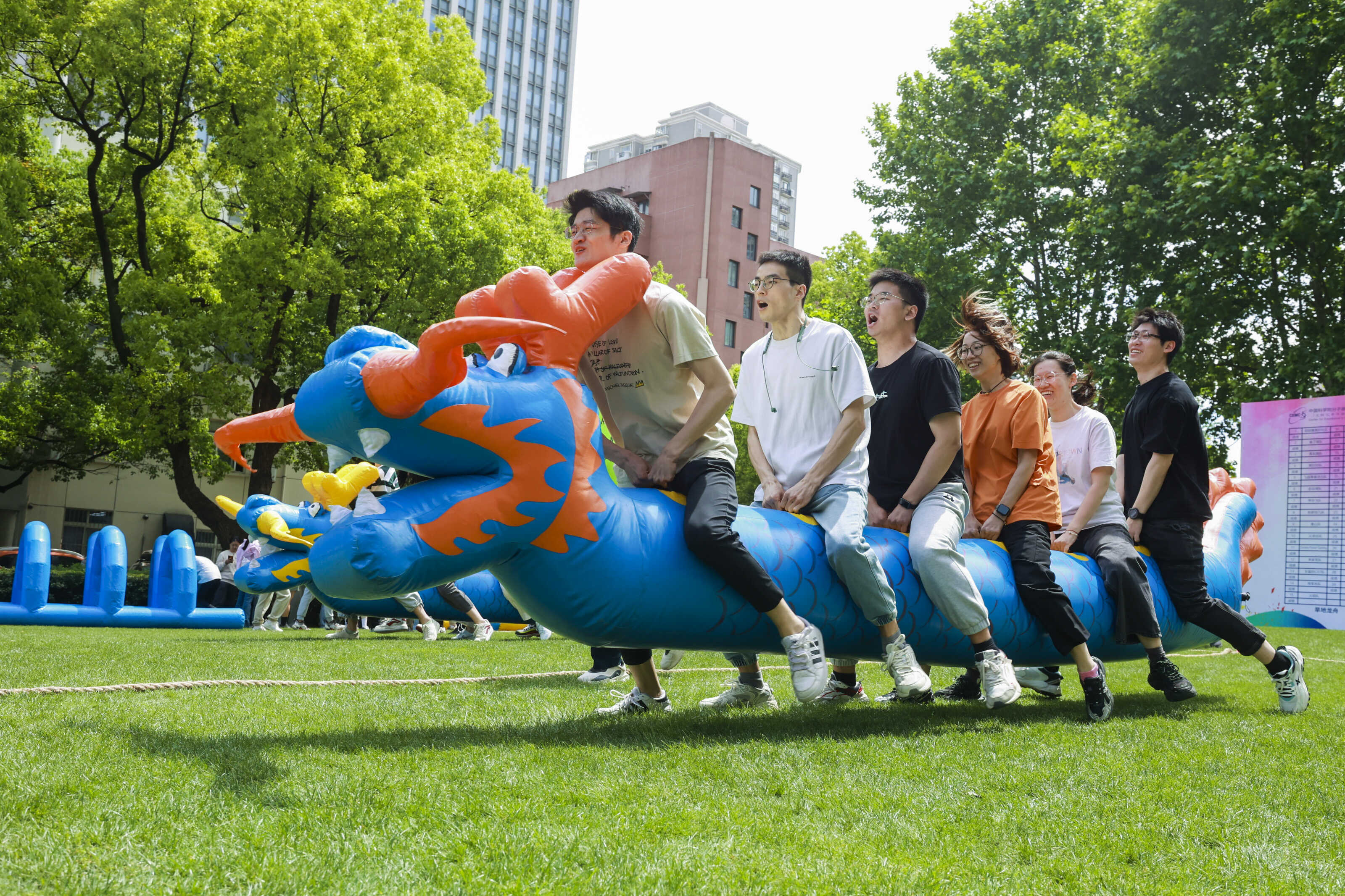 本屆趣味運動會以團(tuán)體賽方式進(jìn)行,共設(shè)置三個比賽項目,包括“力拔山河”8人拔河賽、“龍行龘龘”旱地龍舟賽和“團(tuán)結(jié)奮進(jìn)”越障接力賽。