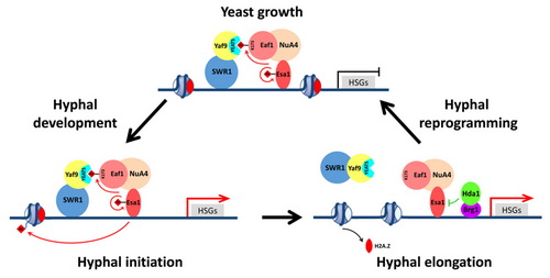 NuA4和SWR1復合物的動態(tài)離合調(diào)控白念珠菌的酵母-菌絲形態(tài)轉(zhuǎn)換