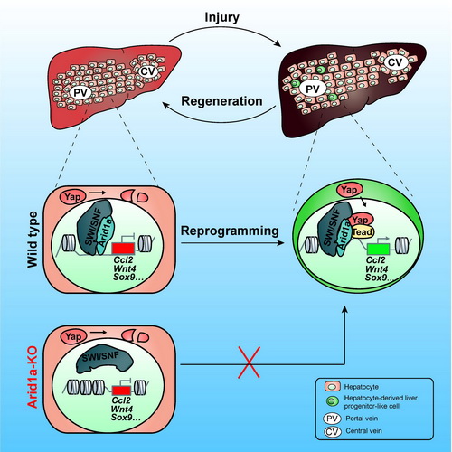 Arid1a調(diào)控?fù)p傷誘導(dǎo)的肝細(xì)胞重編程機(jī)制圖