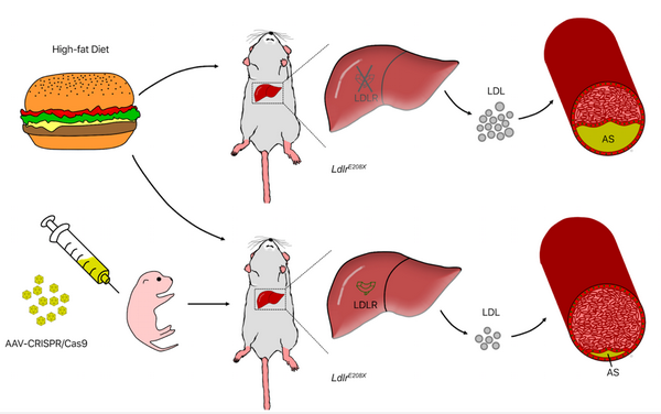 家族性高膽固醇血癥(FH)是一種最常見的遺傳性高脂血癥,臨床表現(xiàn)為血液中膽固醇水平明顯升高,可導(dǎo)致早期心血管疾病(比如心梗、中風(fēng))等,嚴(yán)重時危及生命。FH最常見(>90%)的基因缺陷是由編碼低密度脂蛋白受體LDLR基因突變引起的,LDLR蛋白功能喪失,導(dǎo)致循環(huán)系統(tǒng)中低密度脂蛋白LDL堆積。雜合子的LDLR活性在2~25%,通常使用他汀類藥物進(jìn)行治療,而純合子LDLR蛋白活性小于2%,對于藥物治療常沒有反應(yīng),在嬰幼兒時期就可出現(xiàn)嚴(yán)重動脈粥樣硬化表型及各種并發(fā)癥。針對純合子FH,現(xiàn)有治療手段包括LDL血漿置換及肝移植等,費(fèi)用昂貴且存在一定風(fēng)險,因此繼續(xù)尋找和探索新的治療方法具有重要意義。
