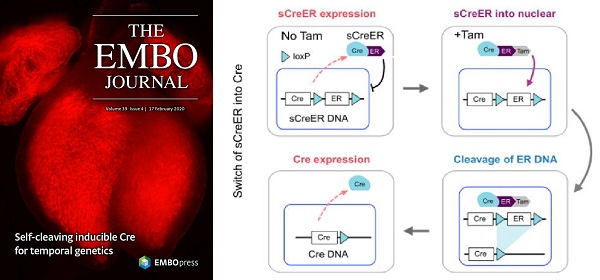 2月17日,國際學術期刊The EMBO Journal以封面文章在線發(fā)表了中國科學院分子細胞科學卓越創(chuàng)新中心(生物化學與細胞生物學研究所)周斌研究組的最新科研成果“Generation of a self-cleaved inducible Cre recombinase for efficient temporal genetic manipulation”。該研究構建了一種新的誘導型Cre重組酶,可通過自我剪切將誘導型CreER轉變成持續(xù)活化的Cre,實現(xiàn)時間可控的高效遺傳操作。這種新型Cre重組酶結合了誘導型CreER和持續(xù)活化的Cre重組酶的優(yōu)點,既提高了重組效率又具有時間可控性,彌補了傳統(tǒng)CreER和Cre重組酶介導的遺傳操作技術的缺陷,突破了長期阻礙基因功能研究的瓶頸,可廣泛應用于器官發(fā)育、組織再生和疾病進程中的基因功能研究。