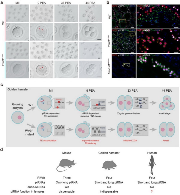 piRNA通路對(duì)金黃地鼠雌性和雄性生殖都是必要的