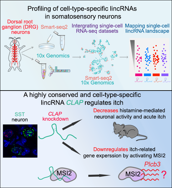 通過單細(xì)胞測(cè)序構(gòu)建初級(jí)感覺神經(jīng)元細(xì)胞類型特異lincRNA表達(dá)譜并發(fā)現(xiàn)lincRNA CLAP調(diào)控癢覺的功能和分子機(jī)制