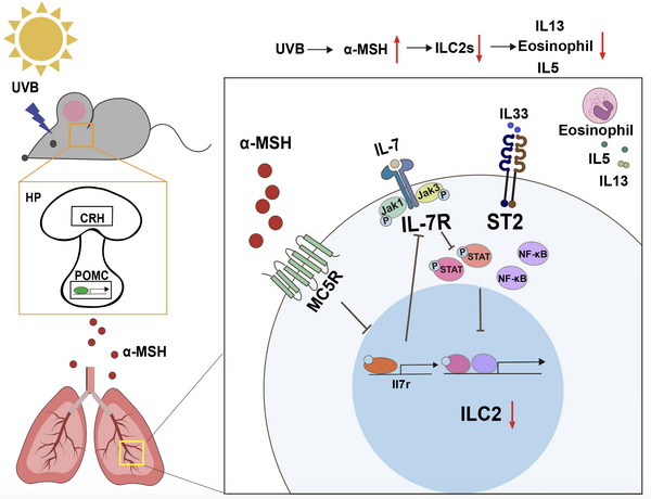 UVB輻照通過垂體-肺軸促進(jìn)α‐MSH釋放從而抑制ILC2s功能機(jī)制總結(jié)