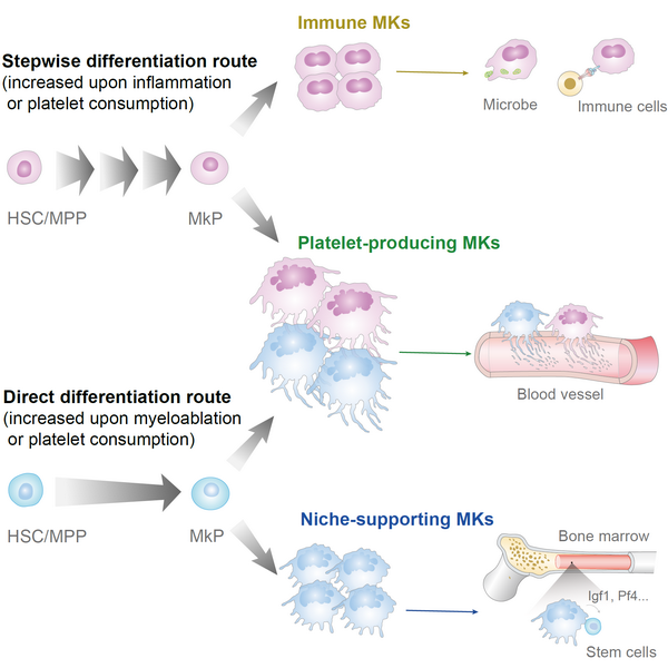 造血干細(xì)胞分化路徑?jīng)Q定巨核細(xì)胞/血小板功能多樣性示意圖