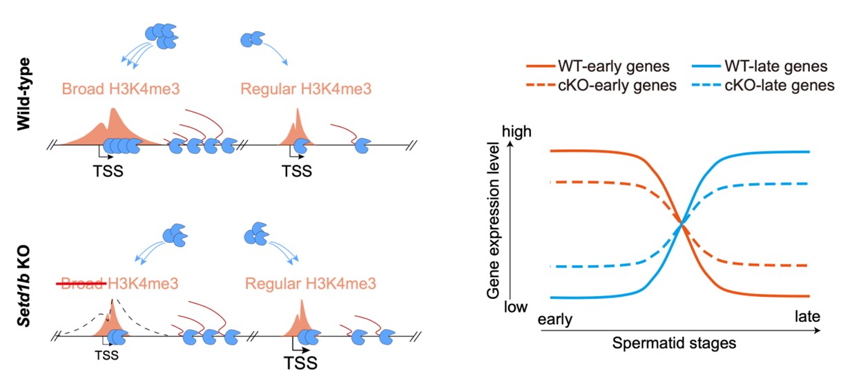 圖:SETD1B介導(dǎo)的Broad H3K4me3調(diào)控精子形成中的轉(zhuǎn)錄時(shí)序性