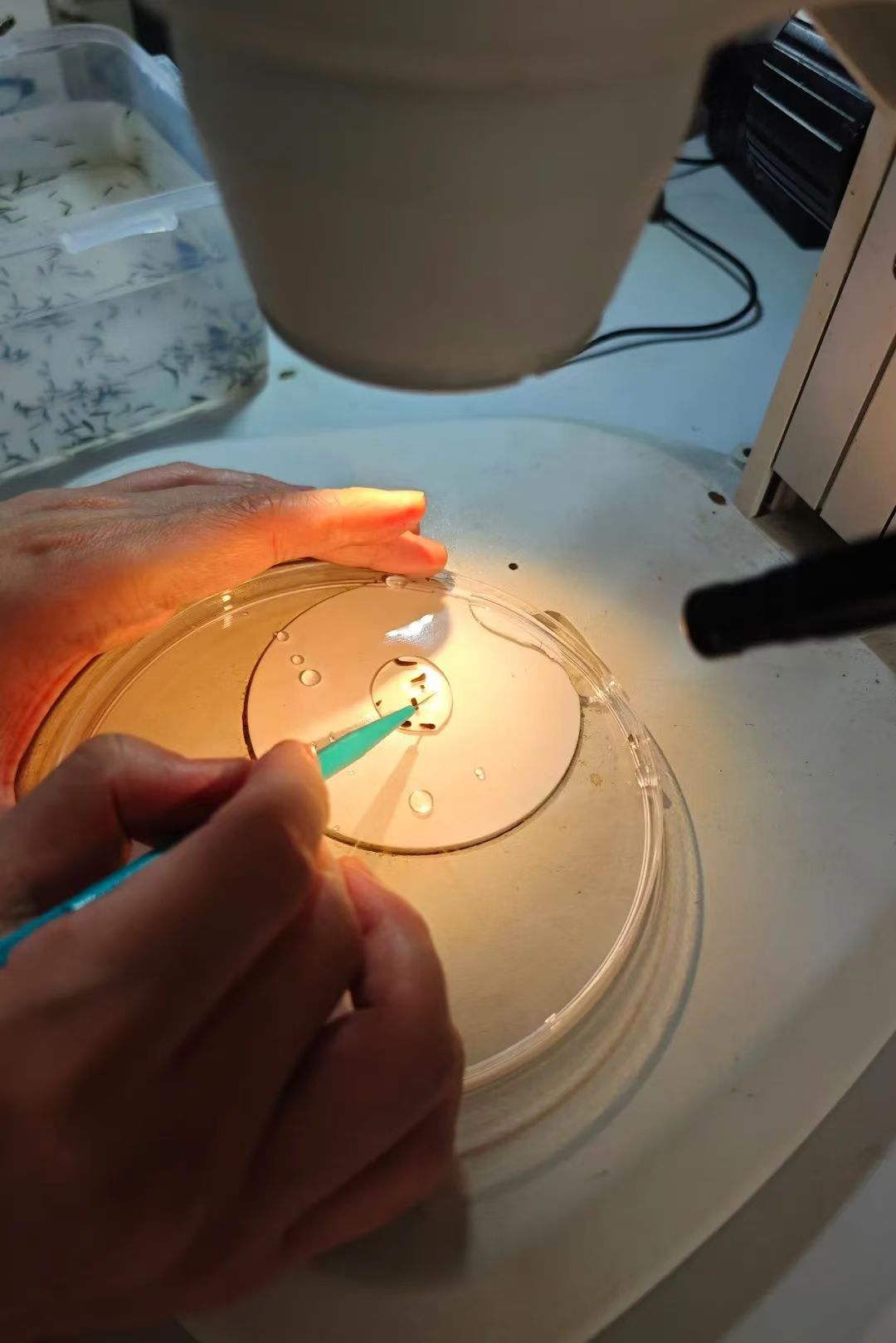 顯微鏡燈光的照射下,曾安手持切割刀片,小心翼翼地把一條2厘米長的渦蟲切割成數(shù)片,7天后,這些“碎片”就將長成全新的個體。