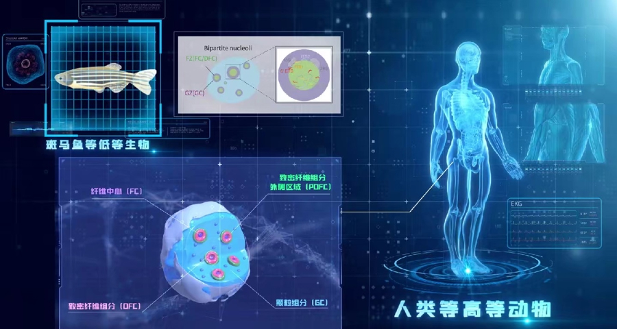 “從不同物種核仁內(nèi)層區(qū)域的結(jié)構(gòu)復(fù)雜程度,我們發(fā)現(xiàn)生物越高等,其rRNA的加工效率越高?!标惲崃峤忉?,斑馬魚等低等生物的核仁內(nèi)層區(qū)域較為簡單,而人類等高等動(dòng)物的核仁內(nèi)層區(qū)域則演化出了FC-DFC雙層結(jié)構(gòu),“這可能是為了滿足復(fù)雜生長需求而不斷分工優(yōu)化的結(jié)果”。