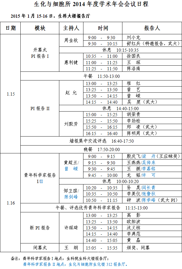 生化與細(xì)胞所2014年度學(xué)術(shù)年會(huì)會(huì)議日程