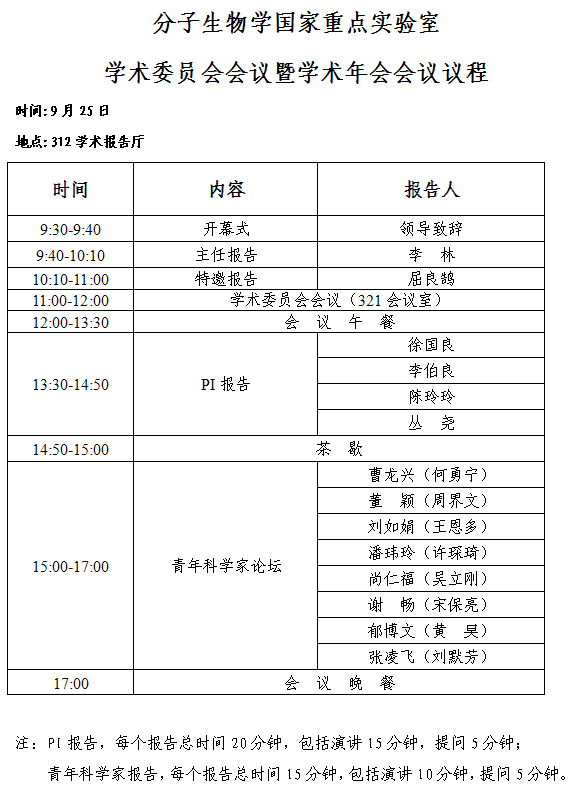 分子生物學(xué)國家重點(diǎn)實(shí)驗(yàn)室學(xué)術(shù)委員會(huì)會(huì)議暨學(xué)術(shù)年會(huì)會(huì)議議程