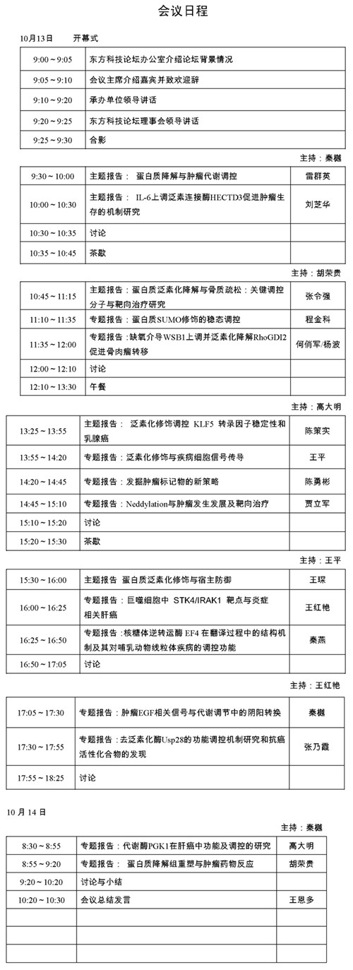 第263期東方科技論壇“蛋白質(zhì)穩(wěn)態(tài)、人類健康與疾病”學術研討會會議日程