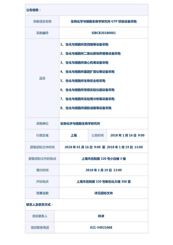 中國科學院分子細胞科學卓越創(chuàng)新中心/生物化學與細胞生物學研究所新成立GTP(Genome Tagging Project)中心。因科研需要,現對項目所需設備進行競價采購,歡迎合格的供應商前來投標。