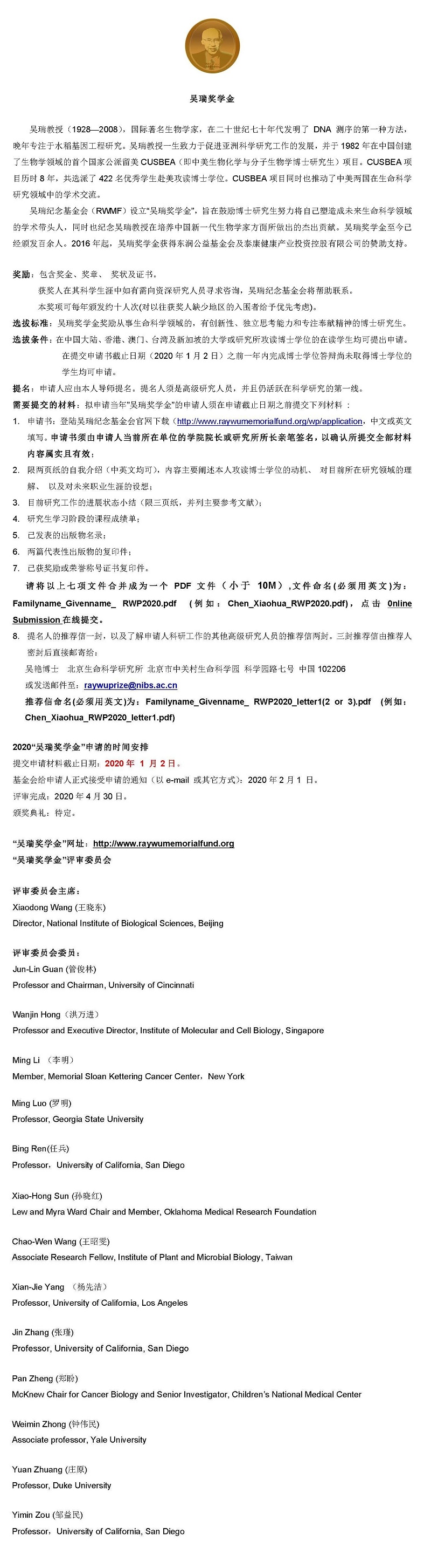 2020年吳瑞獎(jiǎng)學(xué)金申報(bào)通知