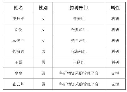 經(jīng)中國(guó)科學(xué)院分子細(xì)胞科學(xué)卓越創(chuàng)新中心公開(kāi)招聘程序,決定擬聘用以下人員到我單位相應(yīng)部門崗位任職。按照相關(guān)人事規(guī)定,現(xiàn)予以公示,為期5個(gè)工作日,從2021年5月7日—2021年5月12日。公示期間,對(duì)擬聘人員如有異議,請(qǐng)于公示截止日期之前將意見(jiàn)發(fā)至郵箱hr@sibcb.ac.cn(請(qǐng)署真實(shí)姓名)。