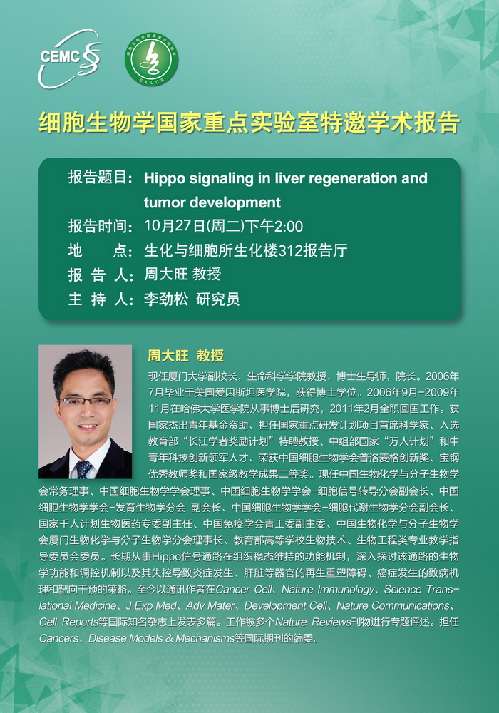 細胞生物學(xué)國家重點實驗室特邀學(xué)術(shù)報告通知