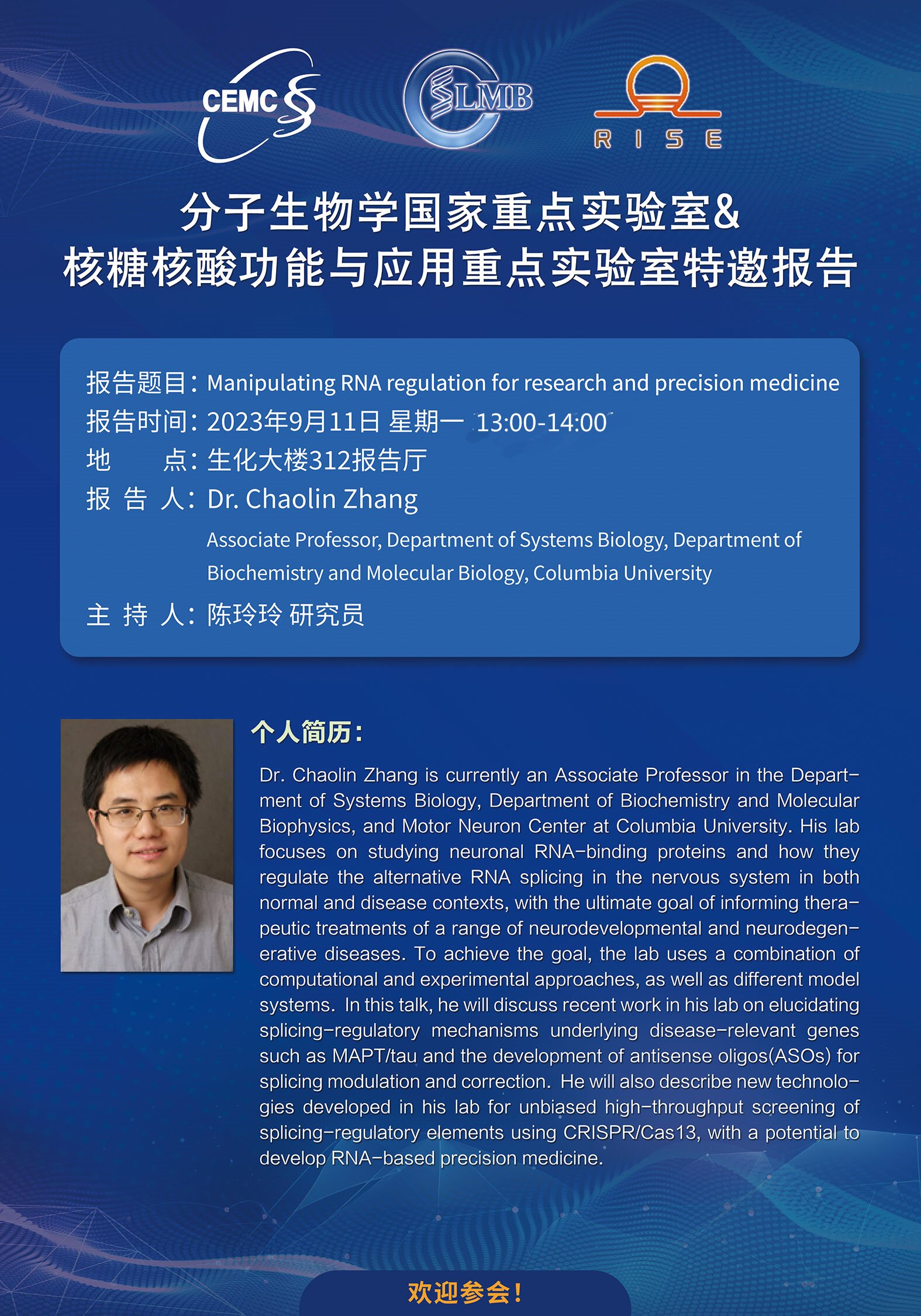 哥倫比亞大學 張朝林 教授 Manipulating RNA regulation for research and precision medicine