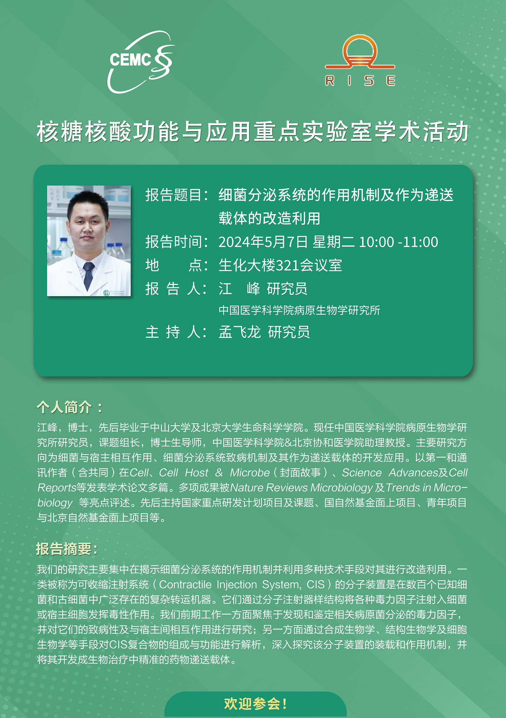 中國醫(yī)學(xué)科學(xué)院病原生物學(xué)研究所?江峰?研究員:細(xì)菌分泌系統(tǒng)的作用機制及作為遞送載體的改造利用