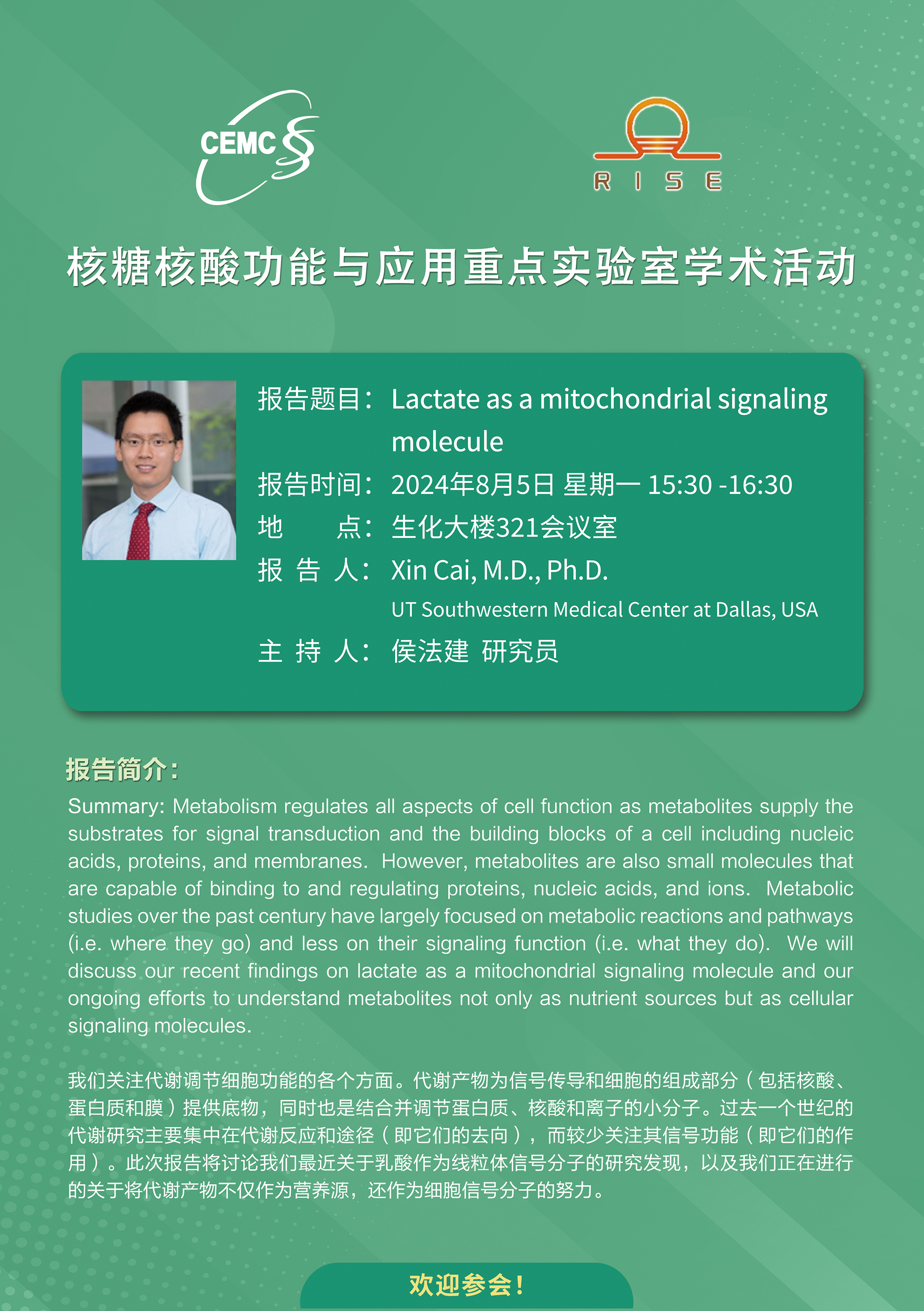 Prof.?Xin Cai,?UT Southwestern Medical Center at Dallas:?Lactate as a mitochondrial signaling molecule