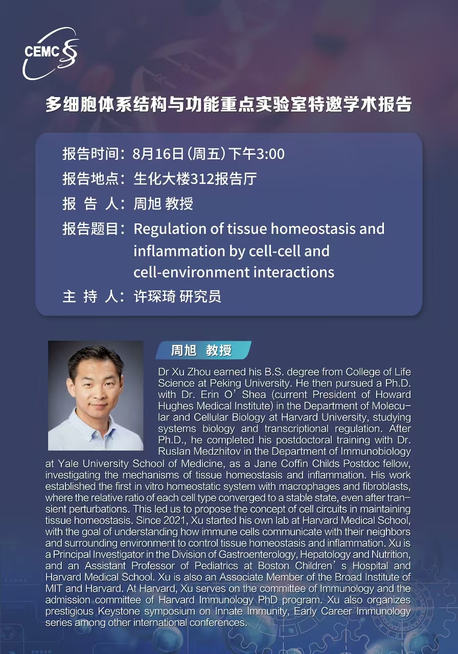 哈佛大學(xué)醫(yī)學(xué)院?周旭?教授:Regulation?of?tissue?homeostasis?and?inflammation?by?cell-cell?and?cell-environment?interactions